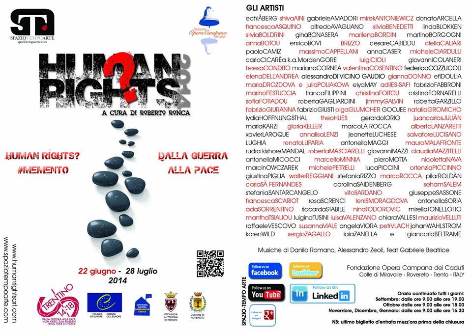 Tenho a honra de ter sido selecionada para fazer parte desta importante exposição sobre direitos humanos : Exposição internacional “FROM WAR TO PEACE” (da guerra a paz), realizada pelo Spazio-Tempo Arte.