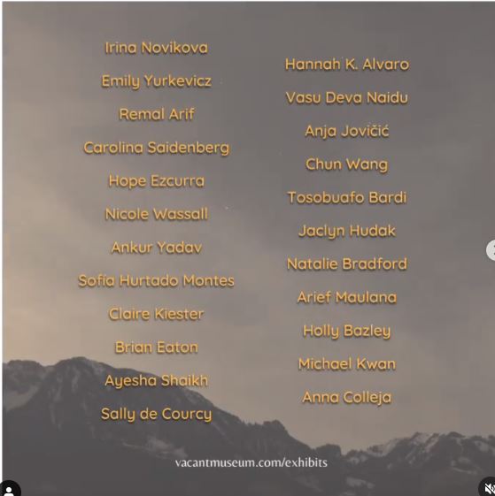 This collection below features over 45 spectacular pieces by artists around the world. As we complete our second year in operation, we must express our deepest gratitude for all of the amazing participants and supporters of the Vacant Museum. It’s a privilege to be passing through linear time with wonderful people like you.