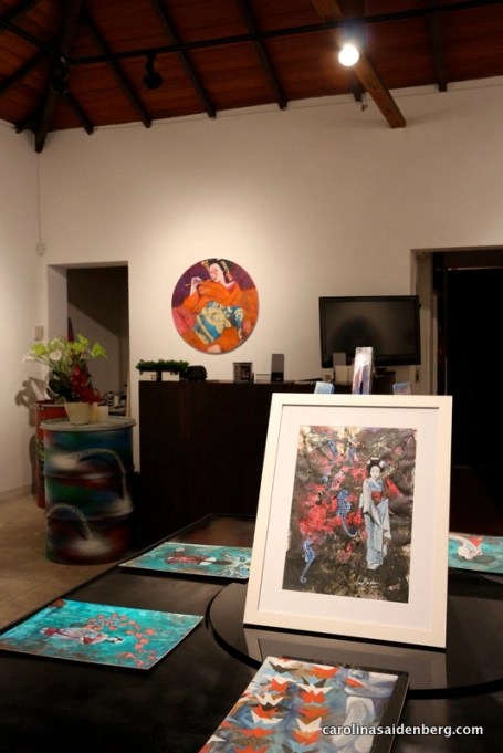 A exposição “Gueishas”, apresenta series de pinturas inspiradas no mundo Oriental, com ênfase em gueixas e cortesãs orientais.